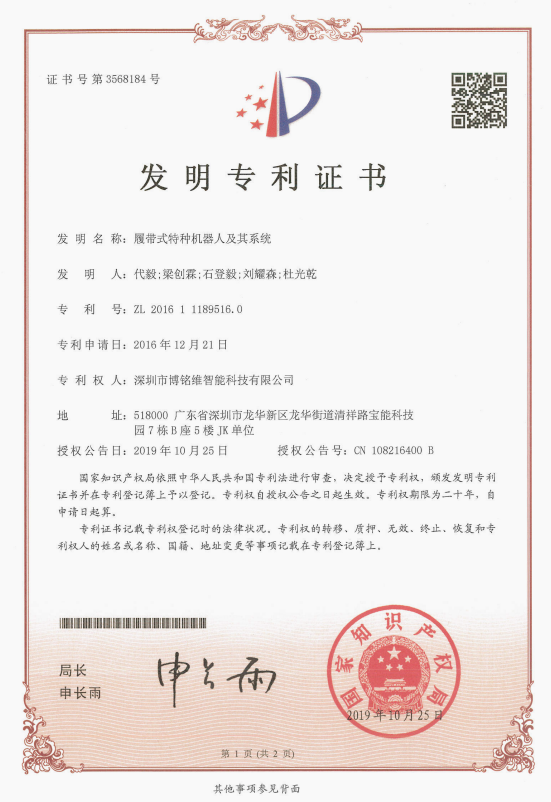 履带式特种机器人及其系统专利