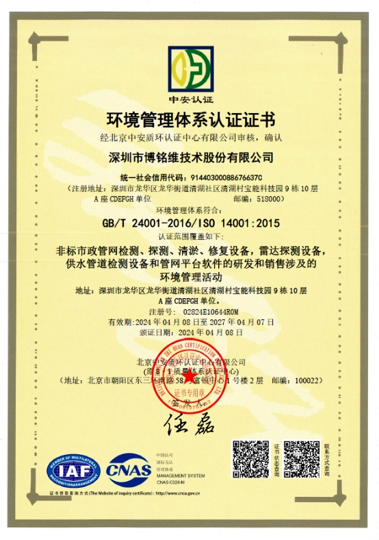 环境管理体系认证证书
