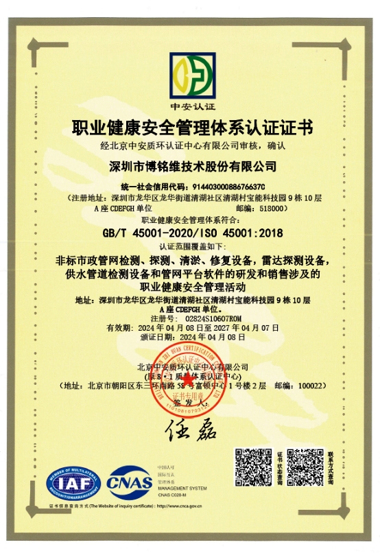 职业健康安全管理体系认证证书