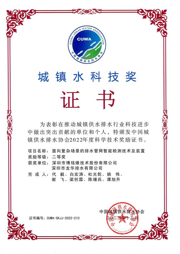 2022年度中国城镇供水排水协会科学技术奖二等奖